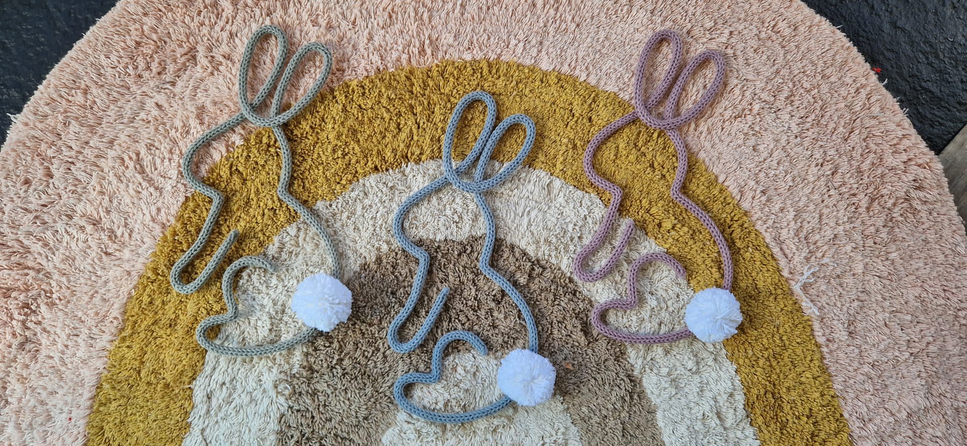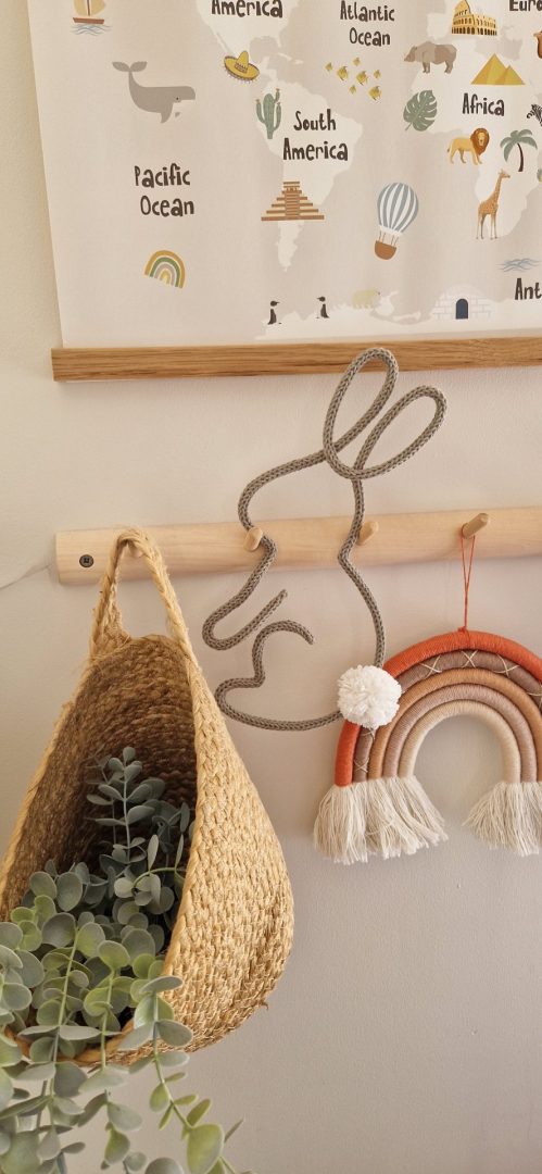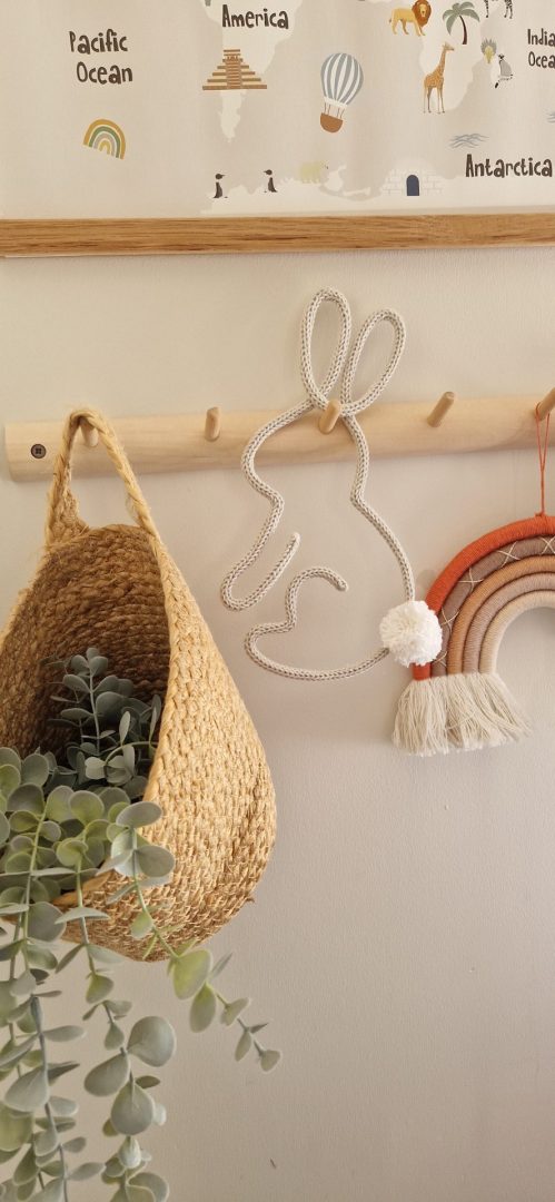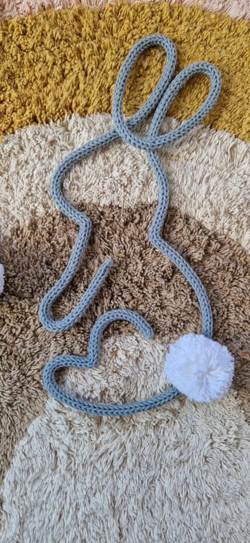It is made from strong steel wire, which is then covered with soft cotton rope. Finished off with a cute little pom pom tail 🤍
